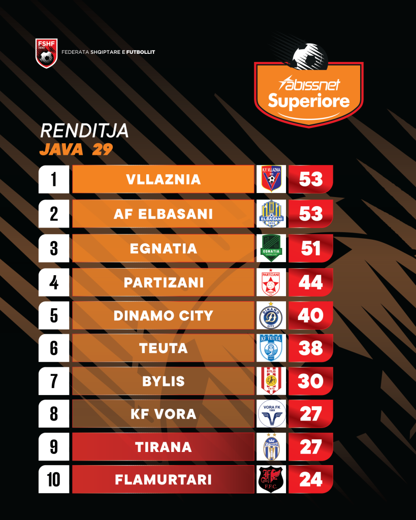 Java e 29-të e Superligës Shqiptare dhuroi rezultate interesante ndërsa sfidat ishin me ndikim për garën për “Final 4” si dhe betejën për mbijetesën.